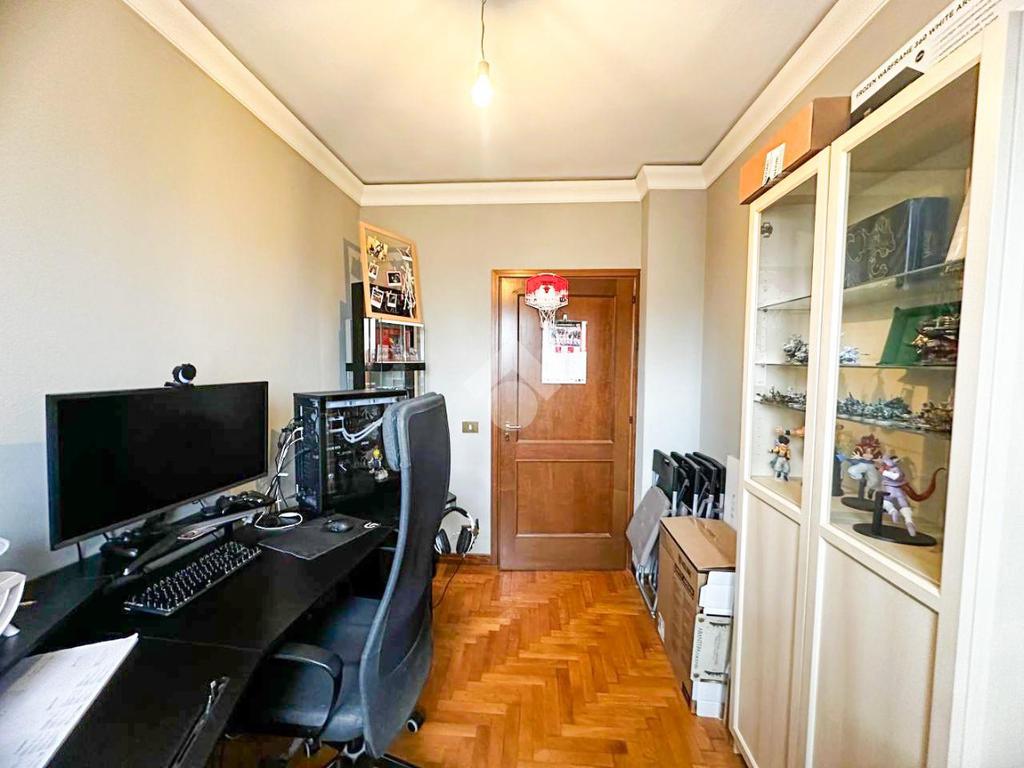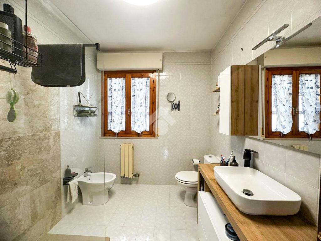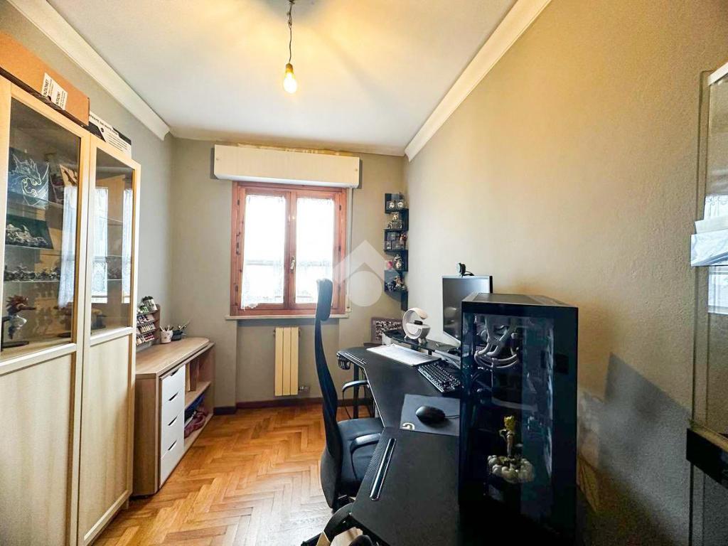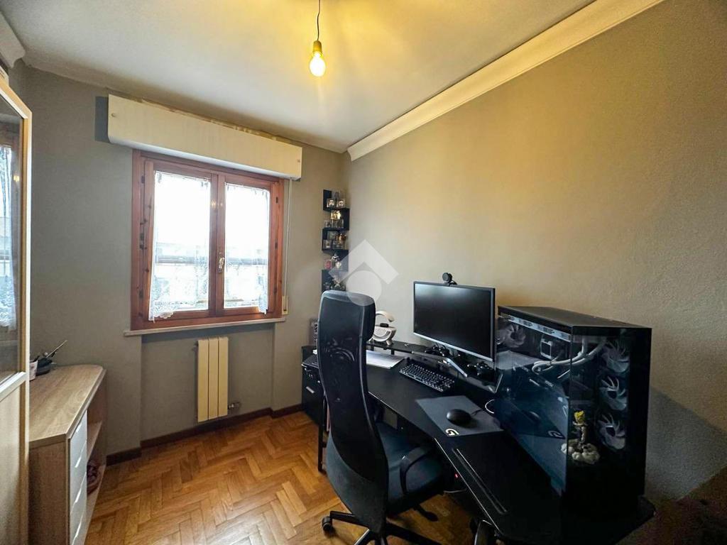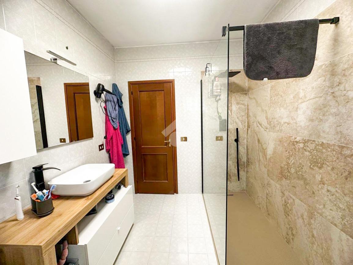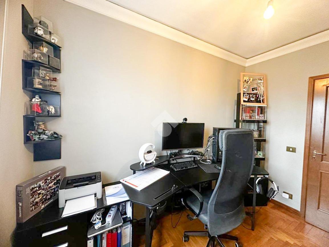 La zona notte comprende due camere matrimoniali con balcone comunicante, una camera media e un bagno finestrato completo di box doccia. Completa la proprietà un pratico ripostiglio.